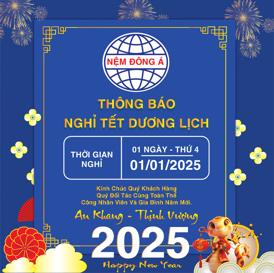 Nệm Đông Á xin trân trọng thông báo lịch nghỉ Tết Dương lịch năm 2025 như sau: